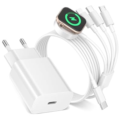 BLITEZZ - Cable Multi cargador USB 4 en 1 para Apple Watch y iPhone 1M cable USB C/micro/Lightning/iWatch carga con cargador rápido de 20 W para iPhone 16/15/14/13/12/6/Airpods Apple Watch 9/8/7/6/5/3/SE